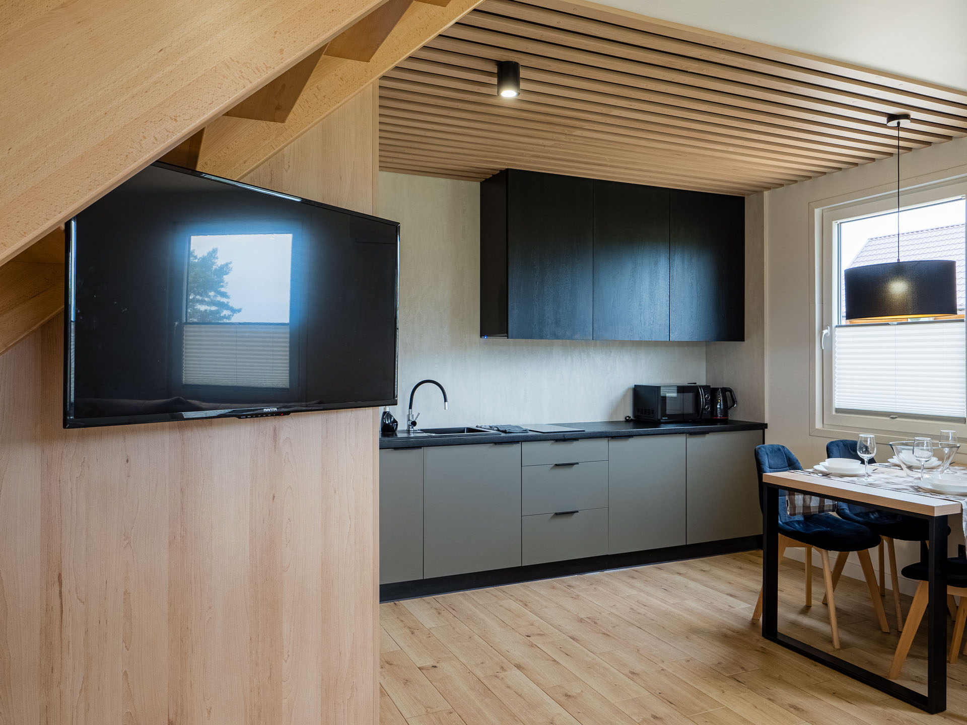 Kameralna sauna, idealna po spacerach wzdłuż brzegu morza lub jeziora.